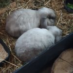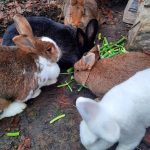 Die drei Schwestern sind aus einer nicht so tollen Haltung bei mir in Pflege gelandet. Verstehen sich prima – auch mit den zwei Jungs gibt´s überhaupt keine Schwierigkeiten. Haben gelernt, wie schön es ist, viel Platz zum Hoppeln zu haben und genießen das frische Futter und lieben aber auch das Heu.