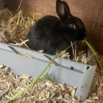 Stups ist ein netter junger Stallhasenbub, der im Sommer mit seinen Brüdern und weiteren großen Kaninchen zu mir in die private Pflegestelle ziehen durfte. Seine drei Brüder durften bereits in ein tolles Zuhause umziehen. Damit er nicht allein wohnt, hat er jetzt eine WG in Außenhaltung mit einem älteren Kastraten, sowie drei älteren Mädels. Das Zusammensetzen und das jetzige Zusammenleben ist sehr harmonisch. Er genießt das Leben mit frischem Grün zum Fressen und das selbstständige rein und raus hoppeln.