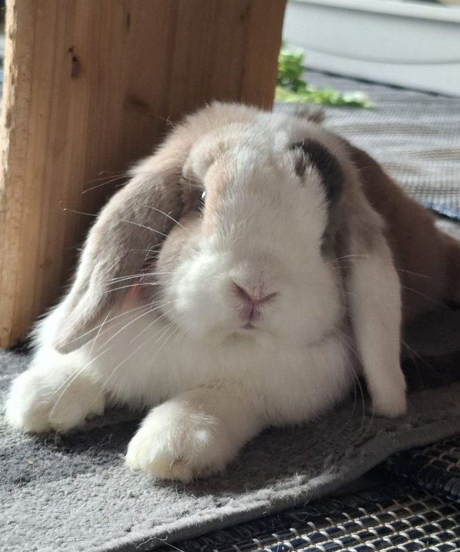 Flecki ist trotzdem ein fröhliches menschenfreundliches Kaninchen. Welcher Widder-erfahrene Mensch möchte dem kleinen Schatz ein neues Zuhause geben?