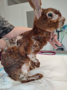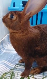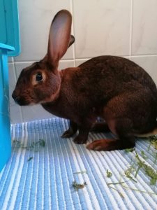 Cappuccino wurde mit seinen beiden Partnertieren abgegeben. Leider wurde die Kaninchenhaltung beendet und so kam er, und zwei von uns vermittelte Kaninchen Ende Juli 2024 zu uns zurück.