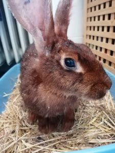 Mirko ist ein Hasenkaninchen. Er ist im Handling etwas zappelig, aber sonst zutraulich.